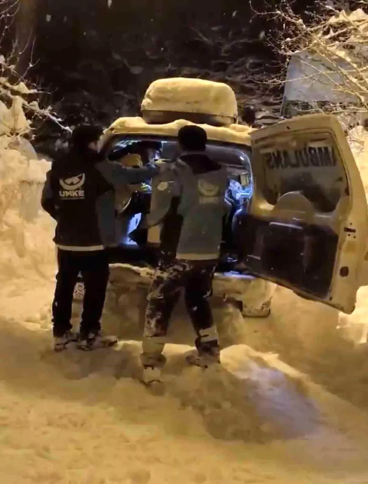 Kar Yağışı Altında Bebeği Hastaneye Yetiştiren Sağlık Ekipleri